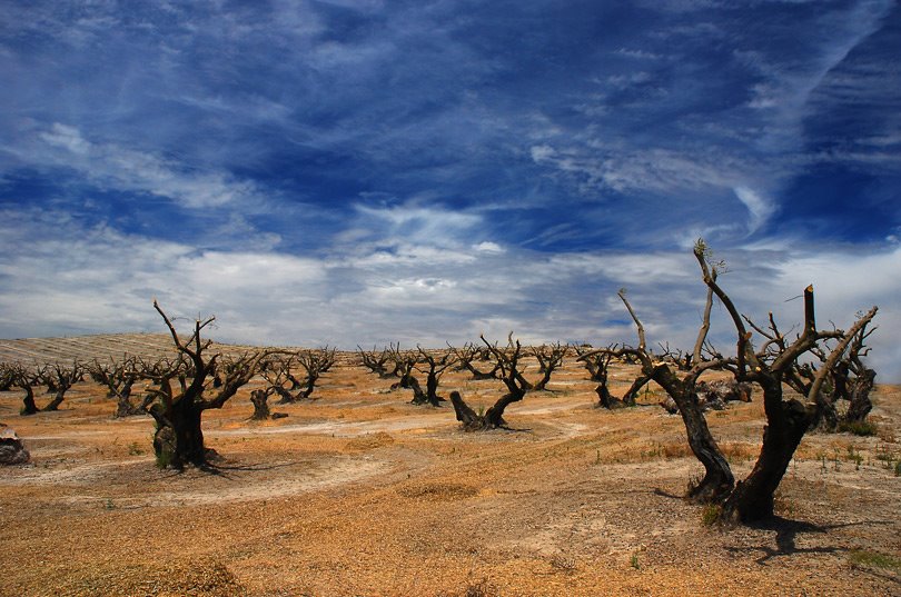 Near the town of Baeza in the Province of Jaen in Andalusia, Spain, the landscape is dotted with a mass of olive trees which thrive in the warm sun. Olive trees have been around since 3500 BC and will easily produce fruit even when planted in the most unproductive land. The olive tree has been known throughout the world as a symbol of wisdom and peace with various religious beliefs behind it.